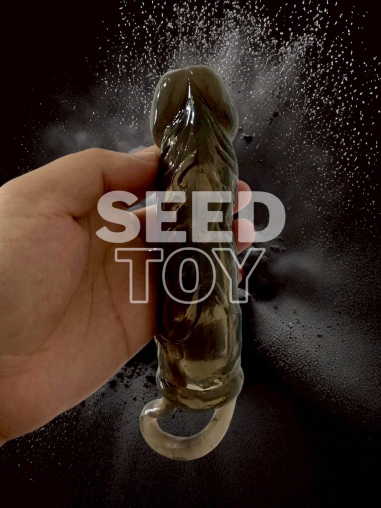 ปลอกเพิ่มผู้ชาย เป็นแบบรัดไข่ทั้งกันหลุด เพิ่มความอึดได้ ซิลิโคนเป็นสีดำใสนิ่มๆที่โคนสั่นได้